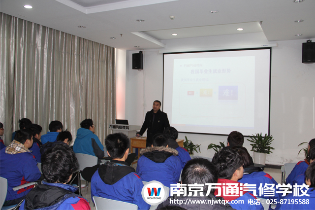南京万通汽修学校将“新生就业教育”做为新生入学课,并将就业指导教育贯穿整个学习过程,时时提醒每位在校生明确学习目标,增强就业信心,提升就业能力和职业素质,为将来顺利就业打下基础。