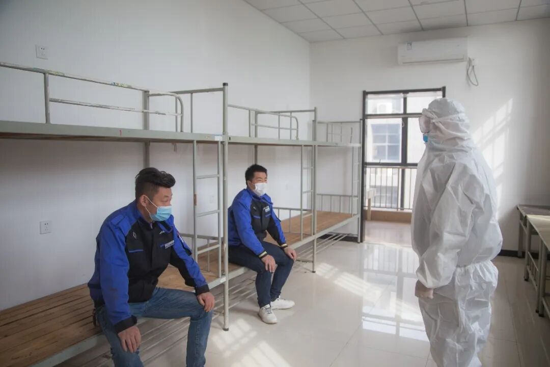 校医穿戴好全套防护装备,将疑似病情学生护送到学校隔离室进行隔离观察、体温复测、询问并登记身体状况和接触史。同时,学校消毒人员穿戴全套防护装备对教室地面、桌面、发热学生经过的走廊、楼道等地方进行全面细致地消毒。