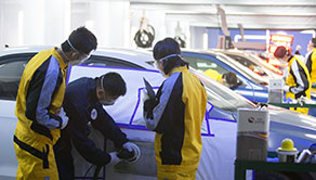 教学内容: 系统全面学习钣金修复、汽车喷涂等热门技术;本专业可学到车身改色、微整形、快速修复等前沿技术。