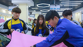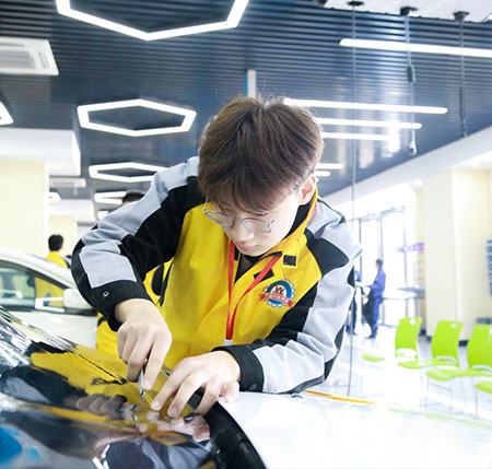 教学内容: 系统全面学习汽车美容、钣金修复、汽车喷涂等热门技术;本专业可学到隐形车衣、车身改色、微整形、快速修复等前沿技术。
